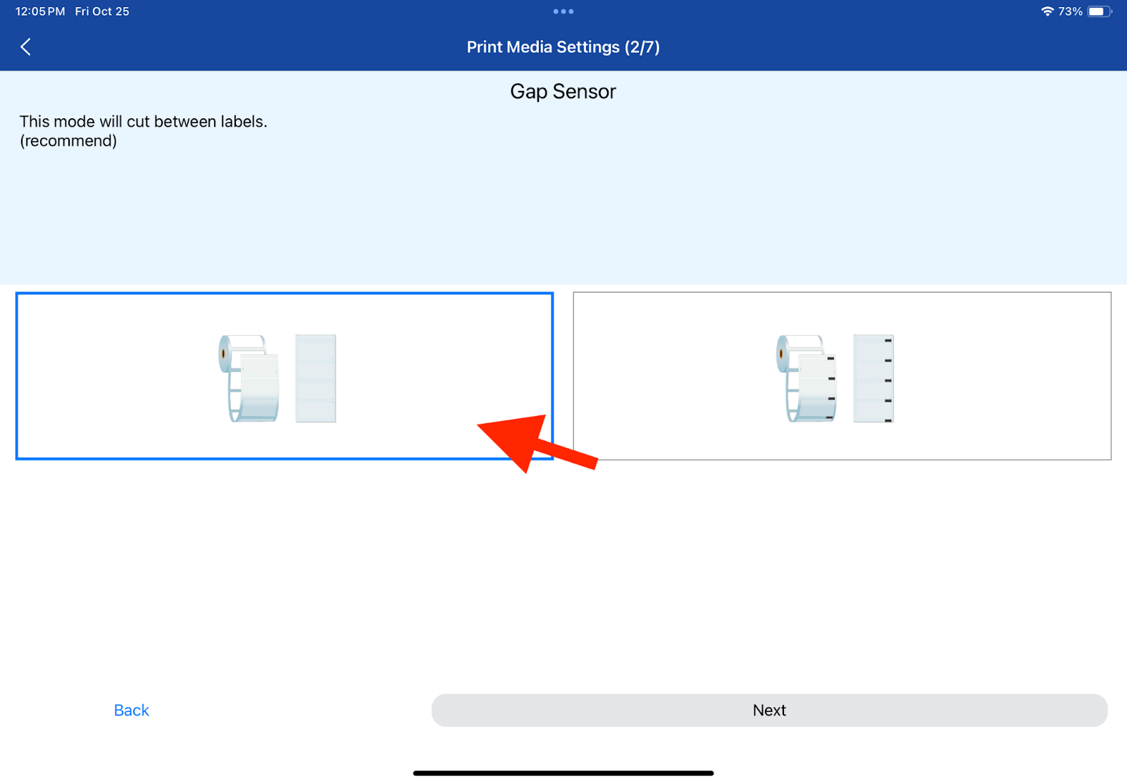 9. Select the ‘Gap Sensor’ setting