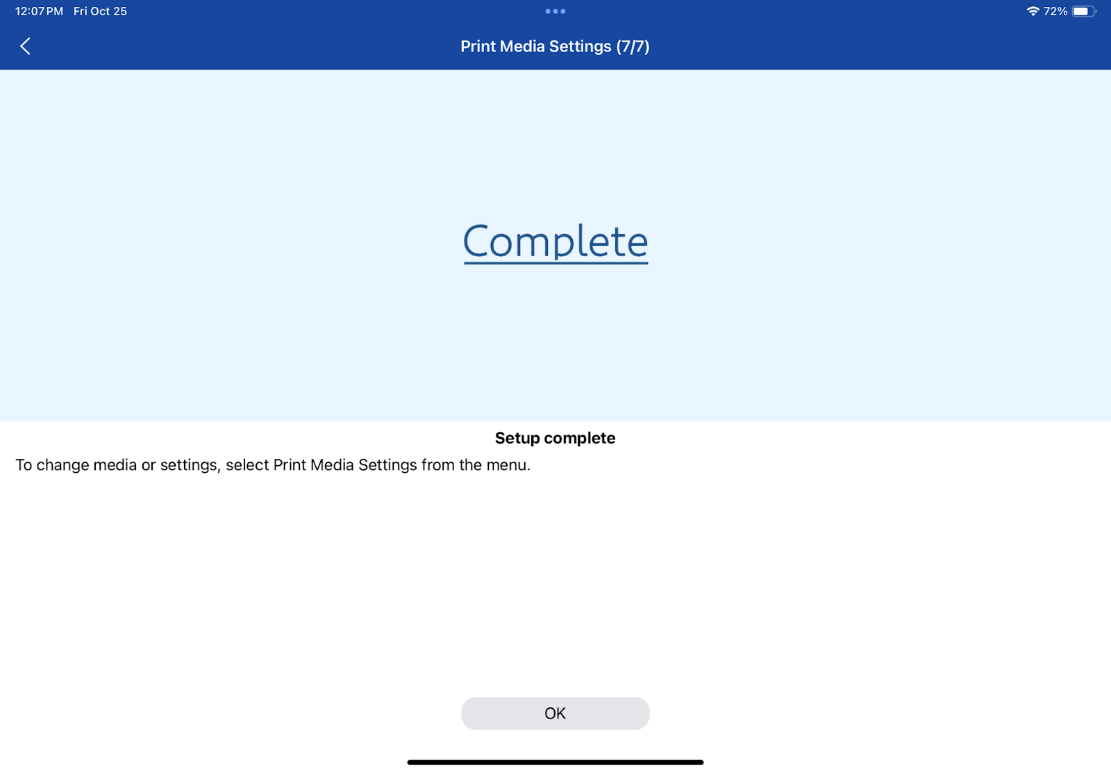 7. Press ‘Print Media Settings’ and follow the prompts