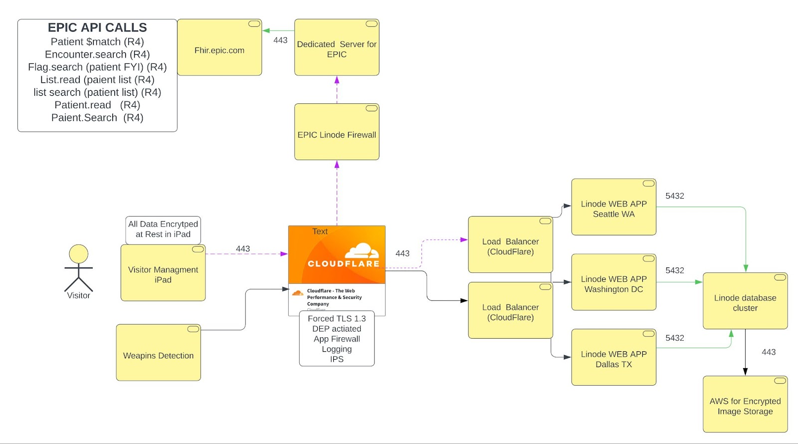 The "EPIC Linode Firewall" highlights the security measures in place to protect this sensitive data from unauthorized access.